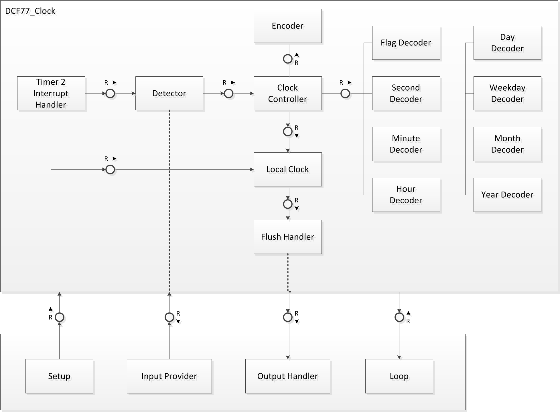 The Simple Clock implements a rudimentary DCF77 clock to exhibit the basic functionality of the library.