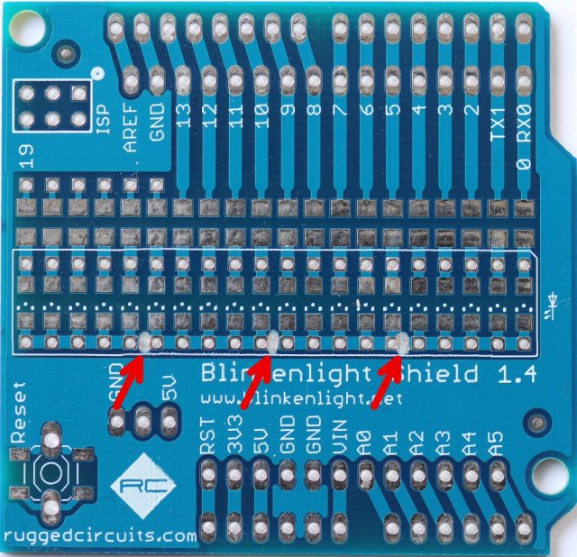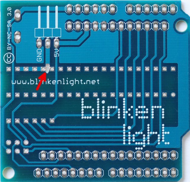 One final word of warning. If you copy this hack, please ensure that you connect the shield to your Arduino only after uploading the sketch. If there is some other sketch running that sets the digital pins to low and the analog pins to high the diodes will more or less short circuit these pins. Chances are that this will cause the Arduino to protect the resetable fuse by letting go some magic smoke.